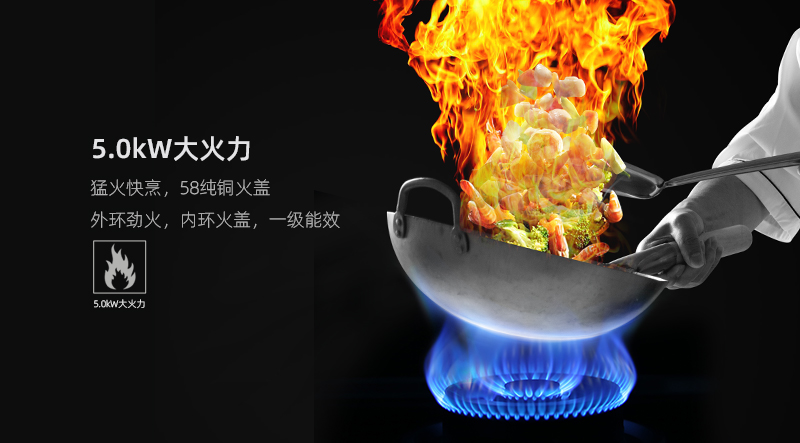 5.0KW大火力,猛火快烹,沉浸大廚級烹飪體驗(yàn),為愛火力全開,颶風(fēng)大吸力,油煙不過臉,護(hù)你的無瑕容顏,更愛你的傾盡全力。