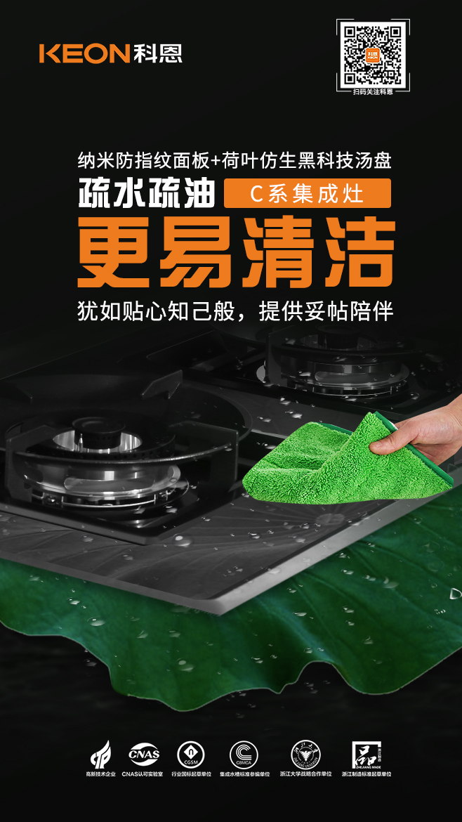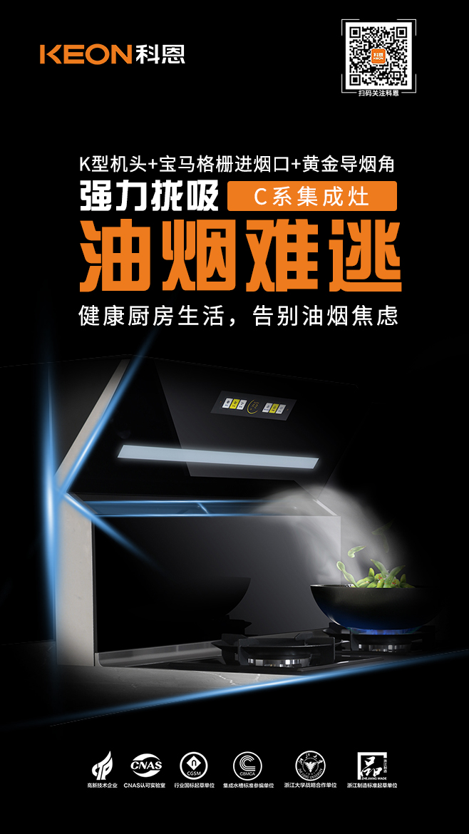 在烹飪環(huán)節(jié),側吸下排不跑煙是集成灶的必備基本功深受大眾喜愛,科恩C260在此基礎上突破常規(guī),創(chuàng)造性的采用以KEON首字母K為標識的機頭設計,其俯沖式角度、搭配寶馬格柵進煙口,在深腔的加持下,攏吸效果更為出色,三者相輔相成,形成黃金控煙區(qū),同步搭配瞬吸大吸力,把油煙扼殺在萌芽狀態(tài),油煙不過臉,無懼猛火爆炒挑戰(zhàn),縱享無煙廚房!