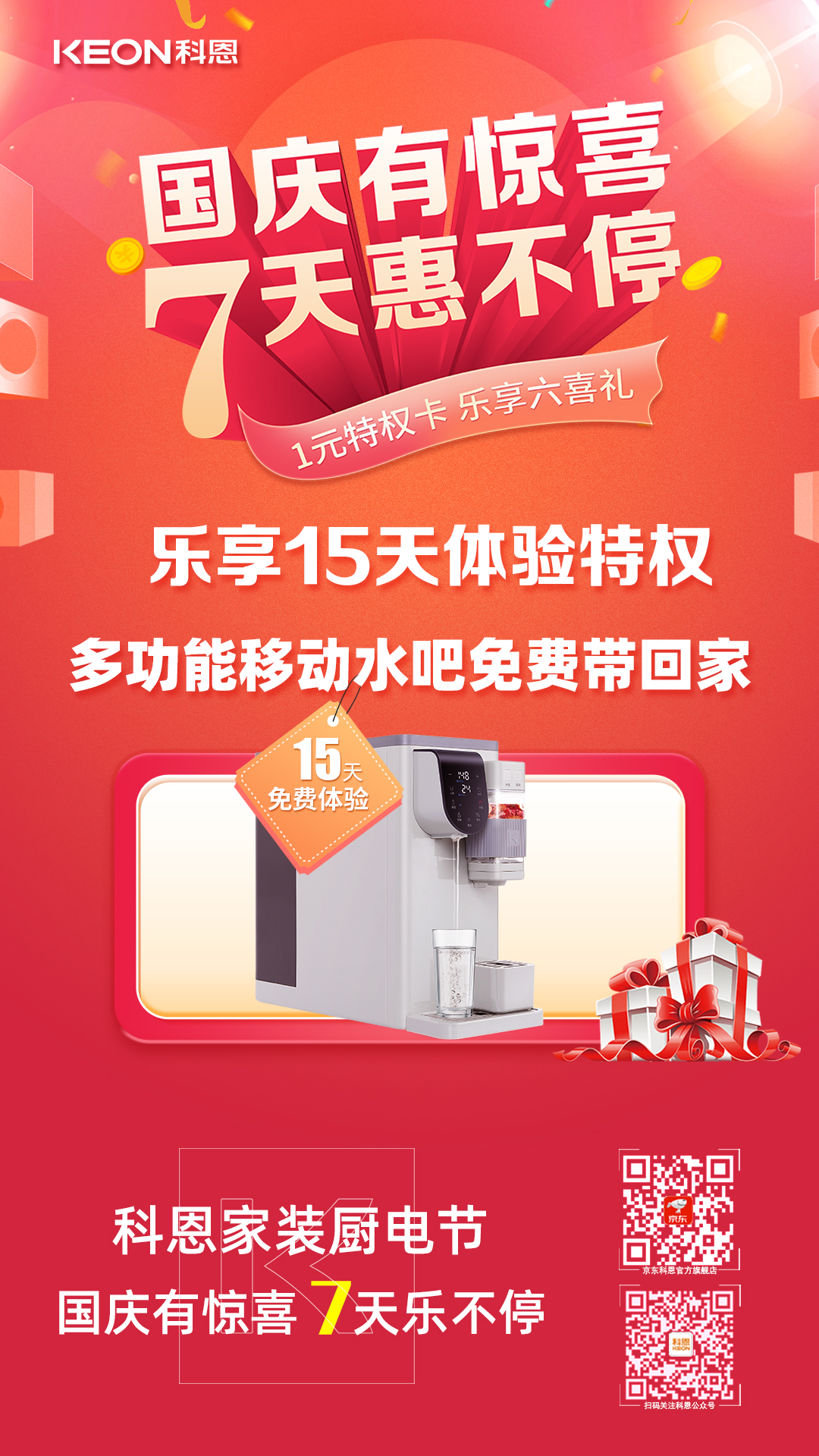 國慶價·提前享,科恩家裝廚電節(jié)之國慶專輯——國慶有驚喜,7天惠不停,科恩集成灶帶你嗨購黃金周!