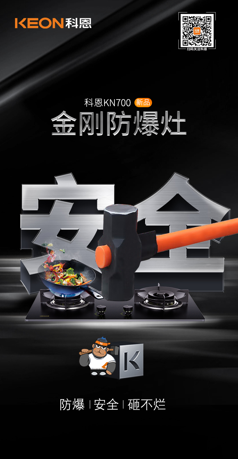 如何讓國(guó)民廚房更安全?科恩研發(fā)了金剛防爆灶,采用硅碳合金板,不僅抗沖擊更可耐高溫1500℃,為國(guó)人廚房生活樹(shù)立起堅(jiān)固的安全屏障!