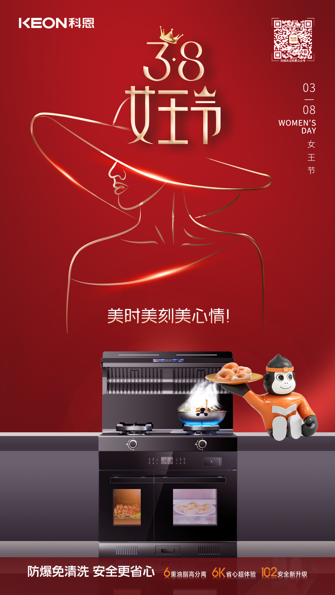 科恩G600防爆免清洗集成灶,一鍵開(kāi)啟全新烹飪模式蒸烤獨(dú)立設(shè)置,30L烤箱+50L蒸箱,可一次滿足,兩種需求,且G600可實(shí)現(xiàn)蒸烤炸燉,多種烹飪方式。