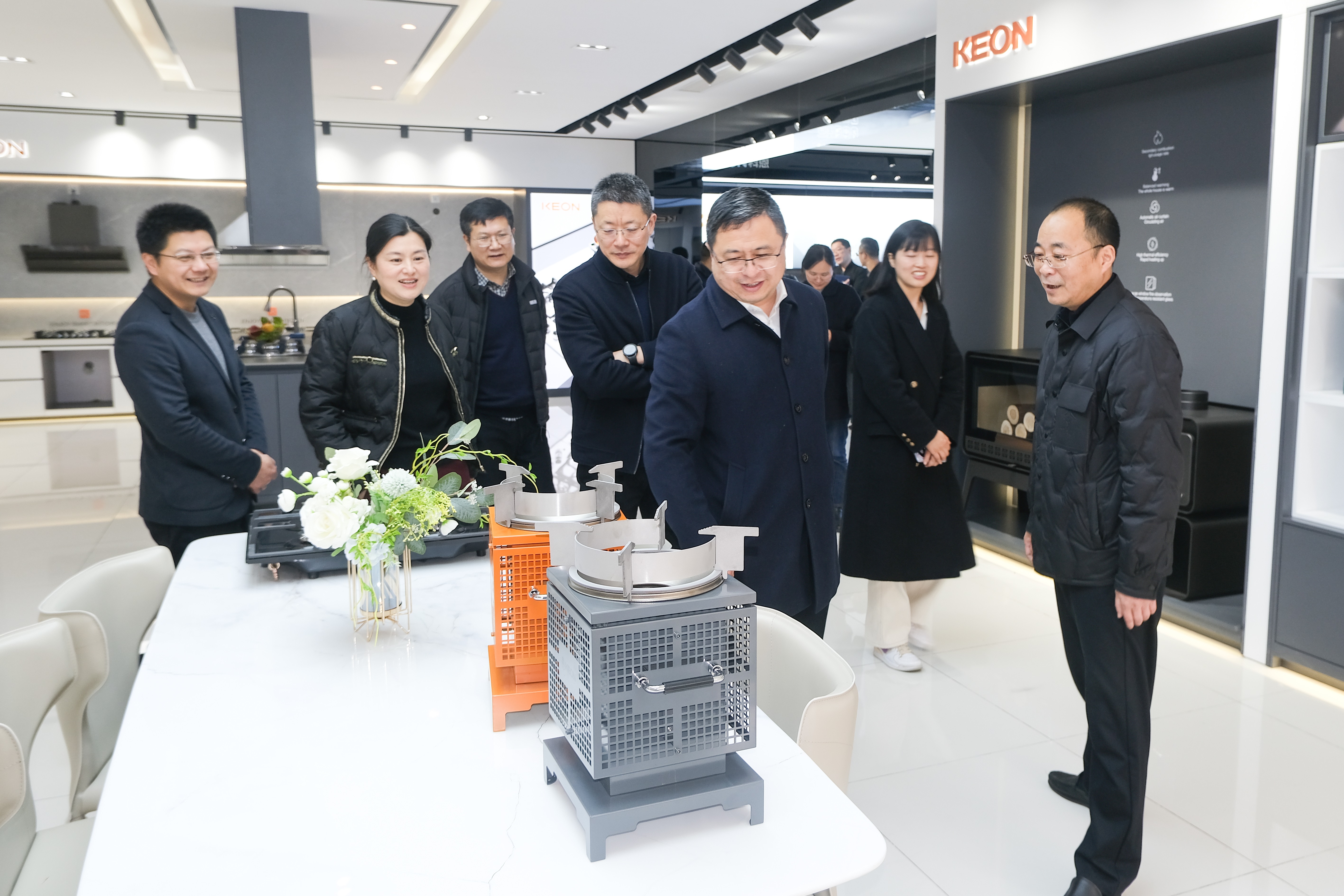 在科恩董事長(zhǎng)俞鋒的熱情接待和陪同下,調(diào)研組一行參觀了科恩電器的企業(yè)文化長(zhǎng)廊,科技展廳,全面系統(tǒng)地了解科恩電器的發(fā)展歷程,產(chǎn)品創(chuàng)新研發(fā)情況,重點(diǎn)調(diào)研了無煙氣化爐等智能廚電產(chǎn)品的研發(fā)與應(yīng)用。