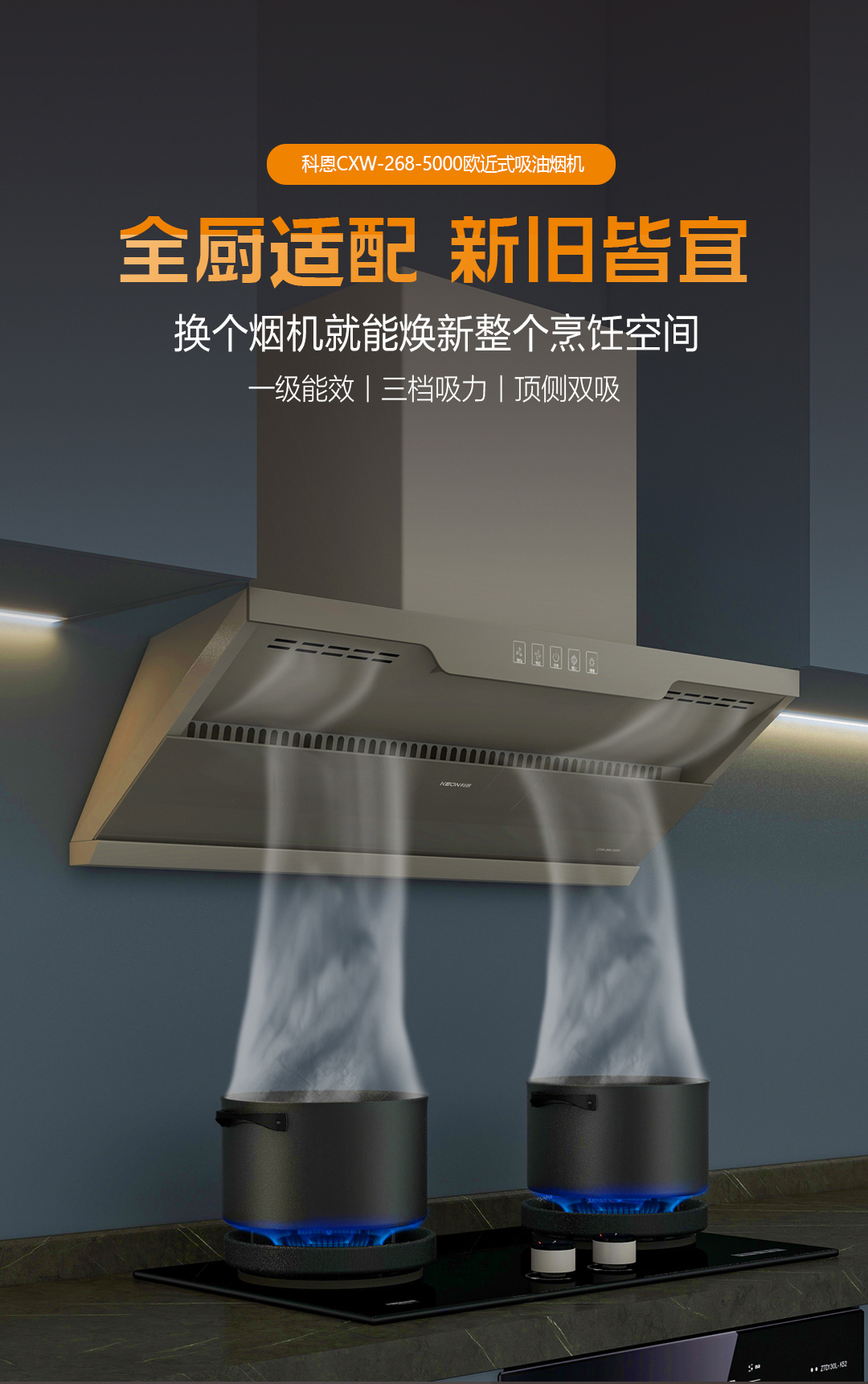 谷雨洗纖塵,人間向暖生。讓科恩油煙機5000和3330,治愈老廚房的呼吸困局。重塑開放式烹飪美學,實現(xiàn)谷雨過后的廚房煥然一新!