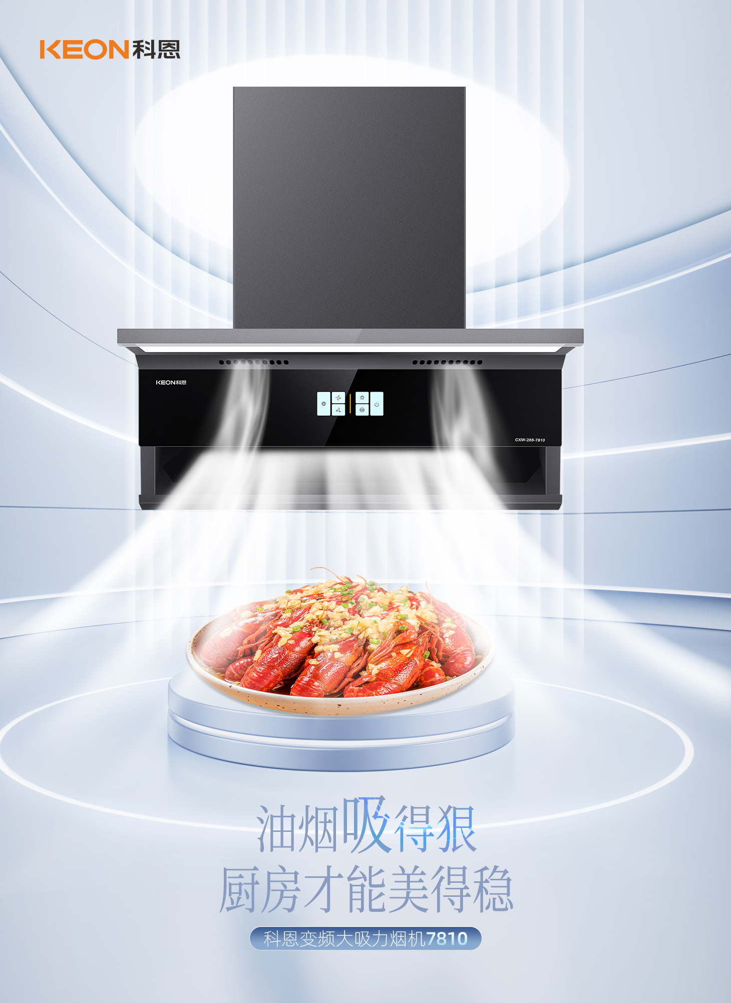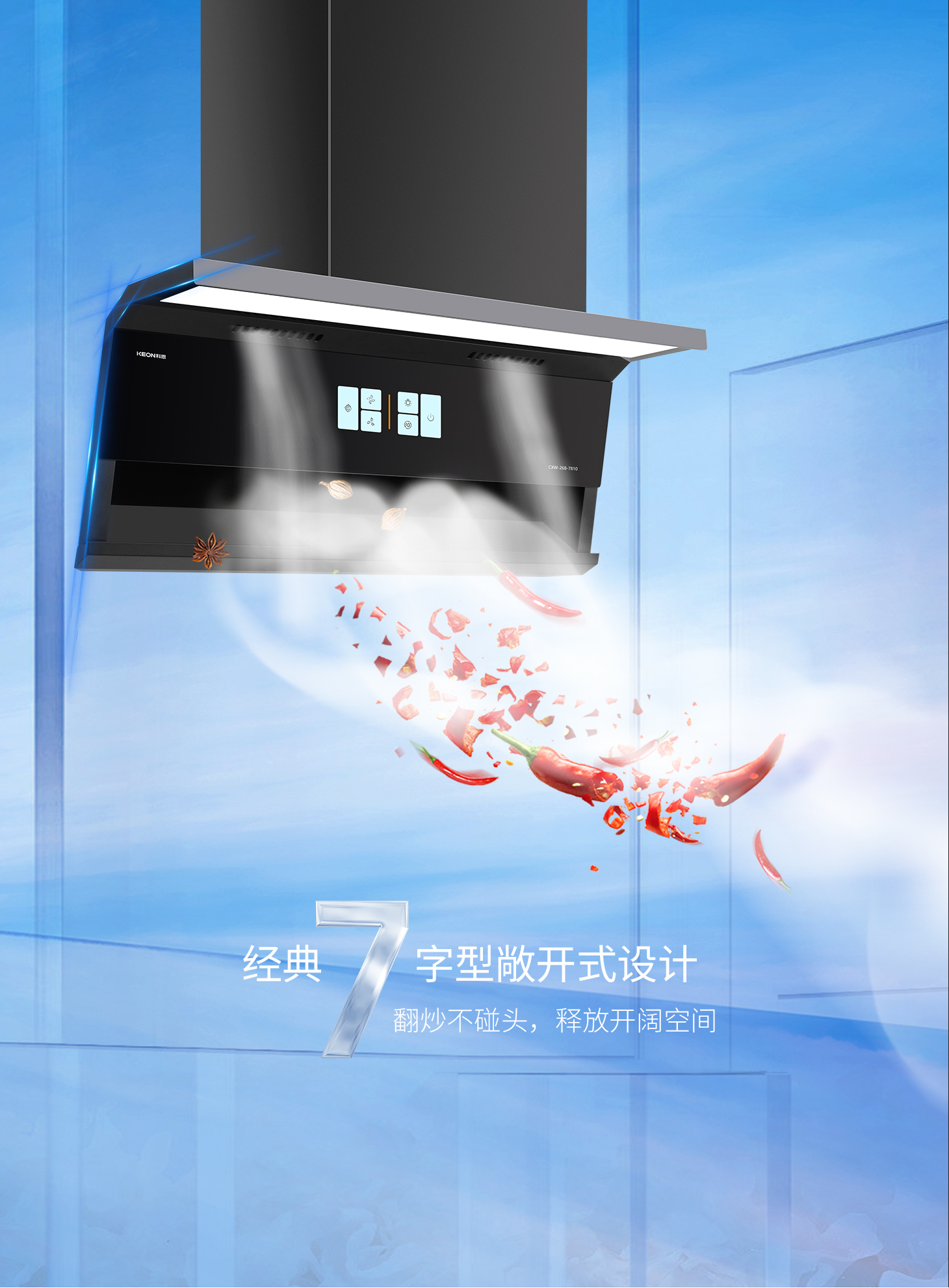 科恩旗艦款大吸力油煙機(jī)7810,兩檔吸力+爆炒模式,輕松下廚零負(fù)擔(dān)。智能自清洗去除頑固油污,延時(shí)凈煙自動(dòng)清除余味,守護(hù)廚房每一寸清新。攜手科恩,煥新生活。科恩7810凈煙有魄力,廚房方寸皆自由。這個(gè)舊廚煥新季,換一臺(tái)會(huì)思考的煙機(jī),給廚房一次溫柔革命!