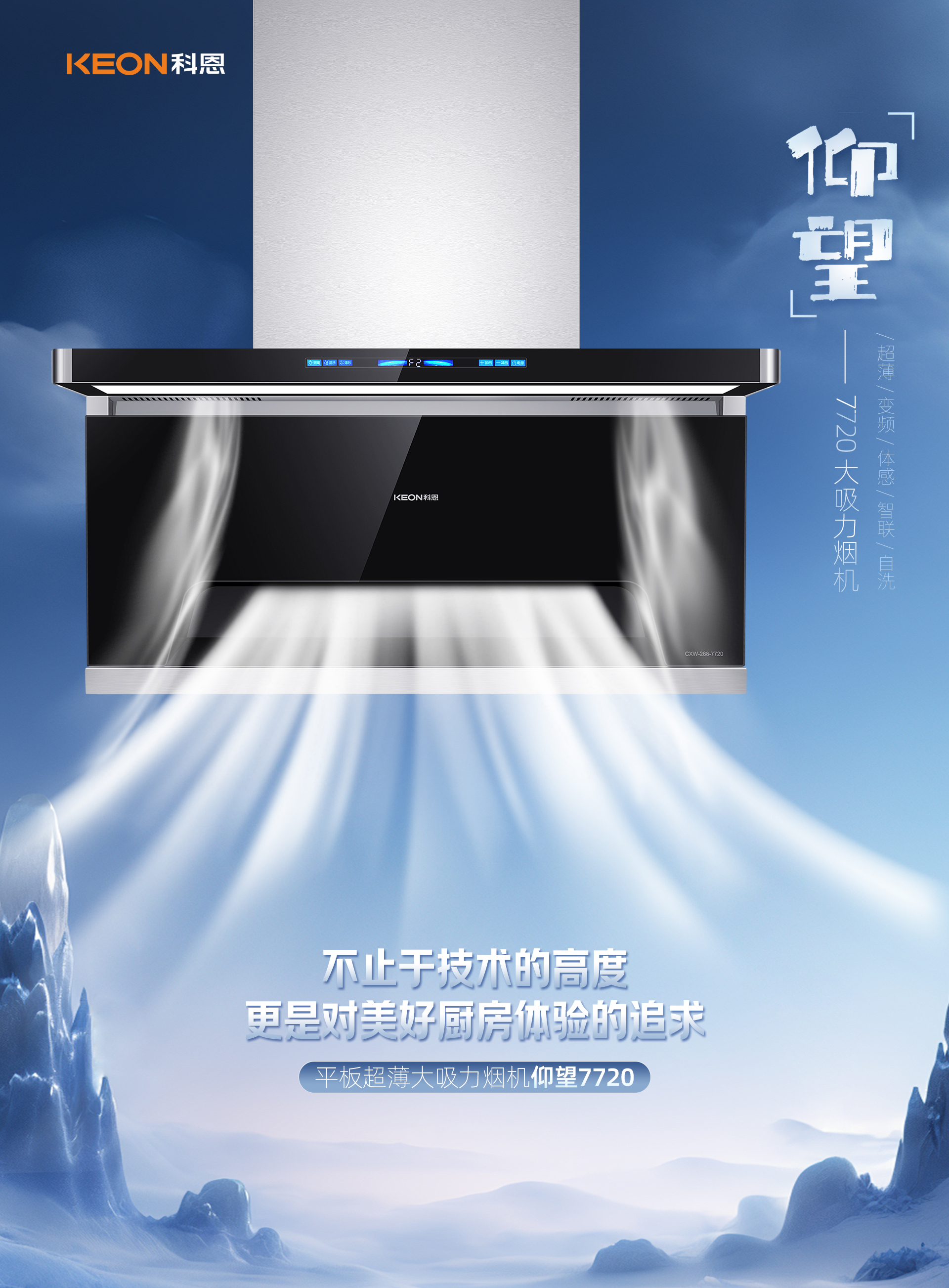 仰望7系登場,定義廚房空間新美學!895X40MM超薄靈動島設計,105°上仰纖薄前傾攏煙結構,止煙于擴散,油煙0逃逸。吸煙口負壓區(qū)內傾滑翔式設計,順勢直排,凈煙更暢快??贫?720煙機,開啟優(yōu)雅烹飪新體驗!