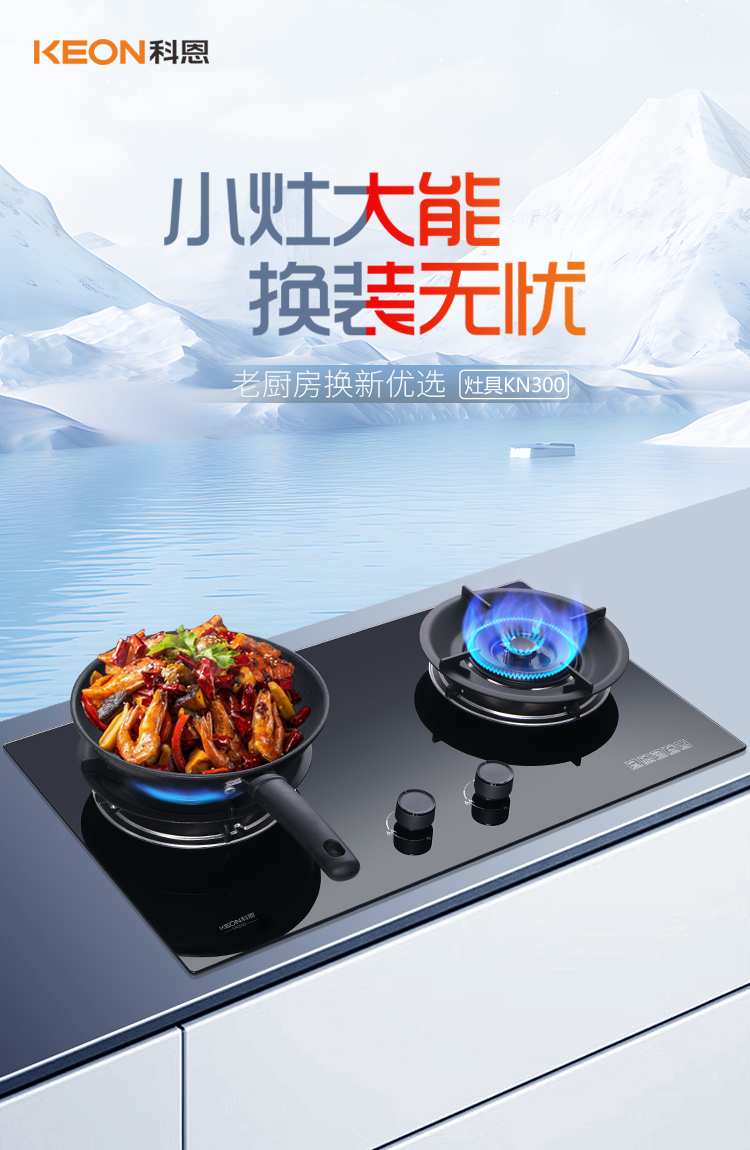 廚房煥新選對(duì)灶,KN300小灶大能少折騰,KN310全能適配多場(chǎng)景,新國(guó)標(biāo)一級(jí)能效硬核實(shí)力,換裝不改孔超省心,美味安全雙豐收。老房煥新不用愁,新房裝修更要優(yōu)。科恩KN300,KN310新品將來(lái)襲,匠心品質(zhì)賦能三餐,節(jié)能科技守護(hù)家園,科恩相伴,三餐有味!