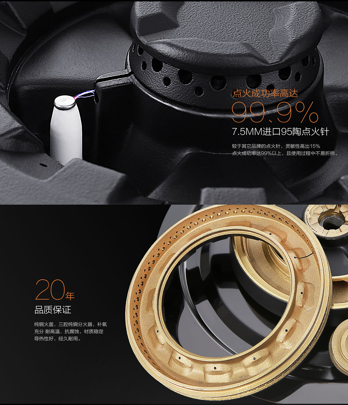 - 耐高溫上下全銅火蓋。
