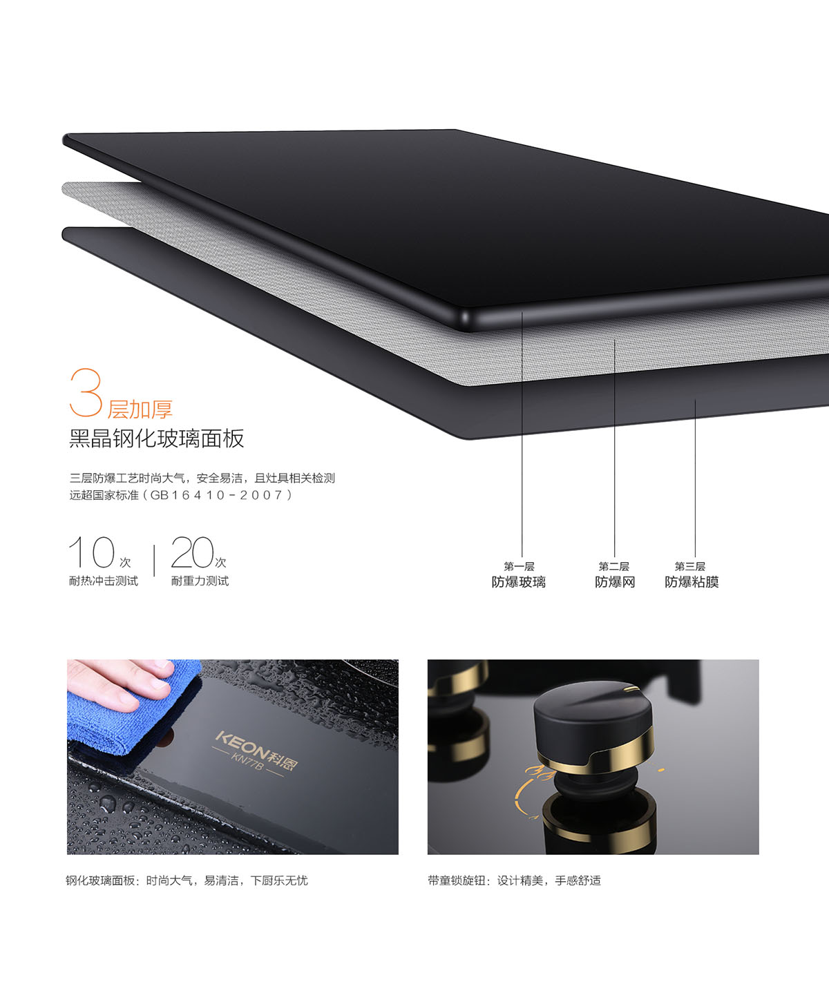 - 黑晶防爆鋼化玻璃面板。