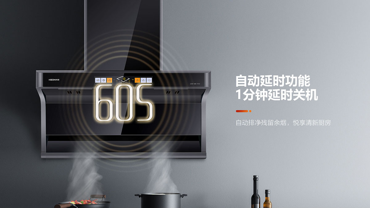 - 自動延時功能,1分鐘延時關(guān)機(jī),自動排凈殘留余煙,悅享清新廚房