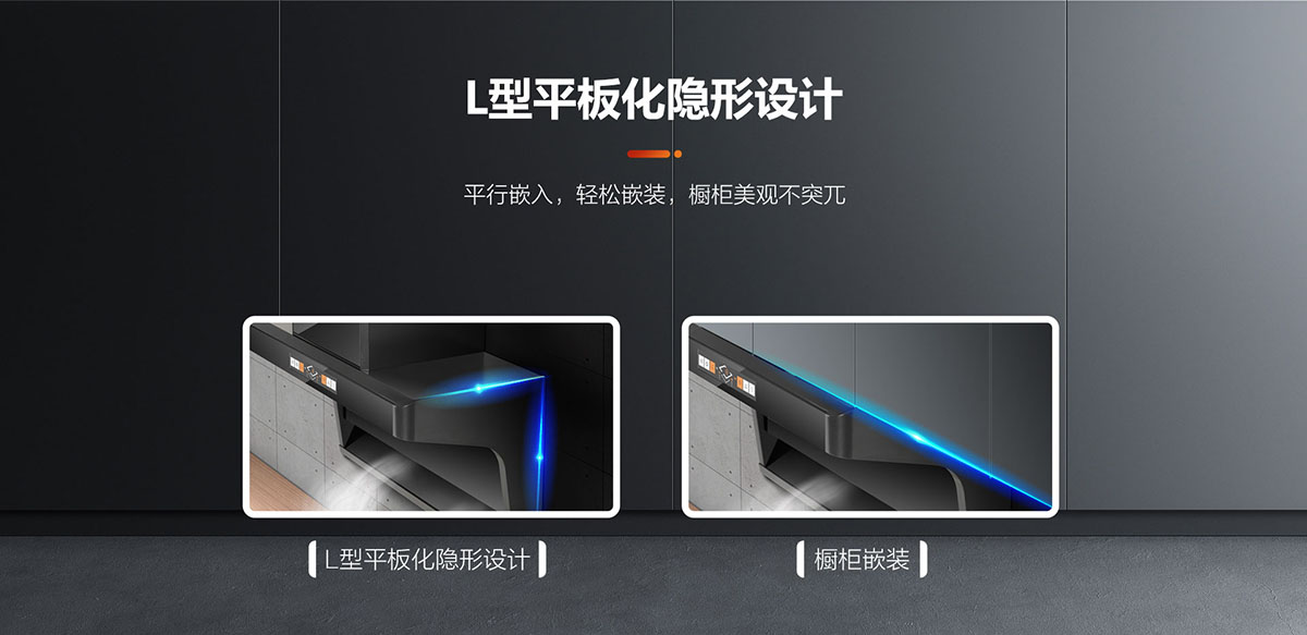 - L型平板化隱形設(shè)計,平行嵌入,輕松嵌裝,櫥柜美觀不突兀