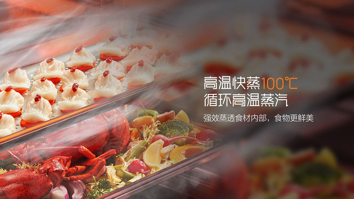 - 360°立體環(huán)噴技術(shù),加速動態(tài)蒸汽內(nèi)循環(huán),食物鎖鮮更營養(yǎng)