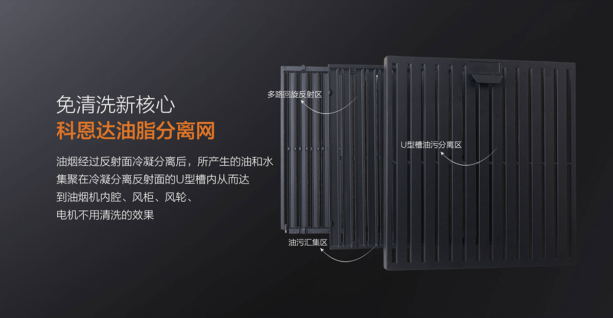 - 科恩達油脂分離網(wǎng)便捷拆裝設計,表面易潔工藝,拆洗簡單