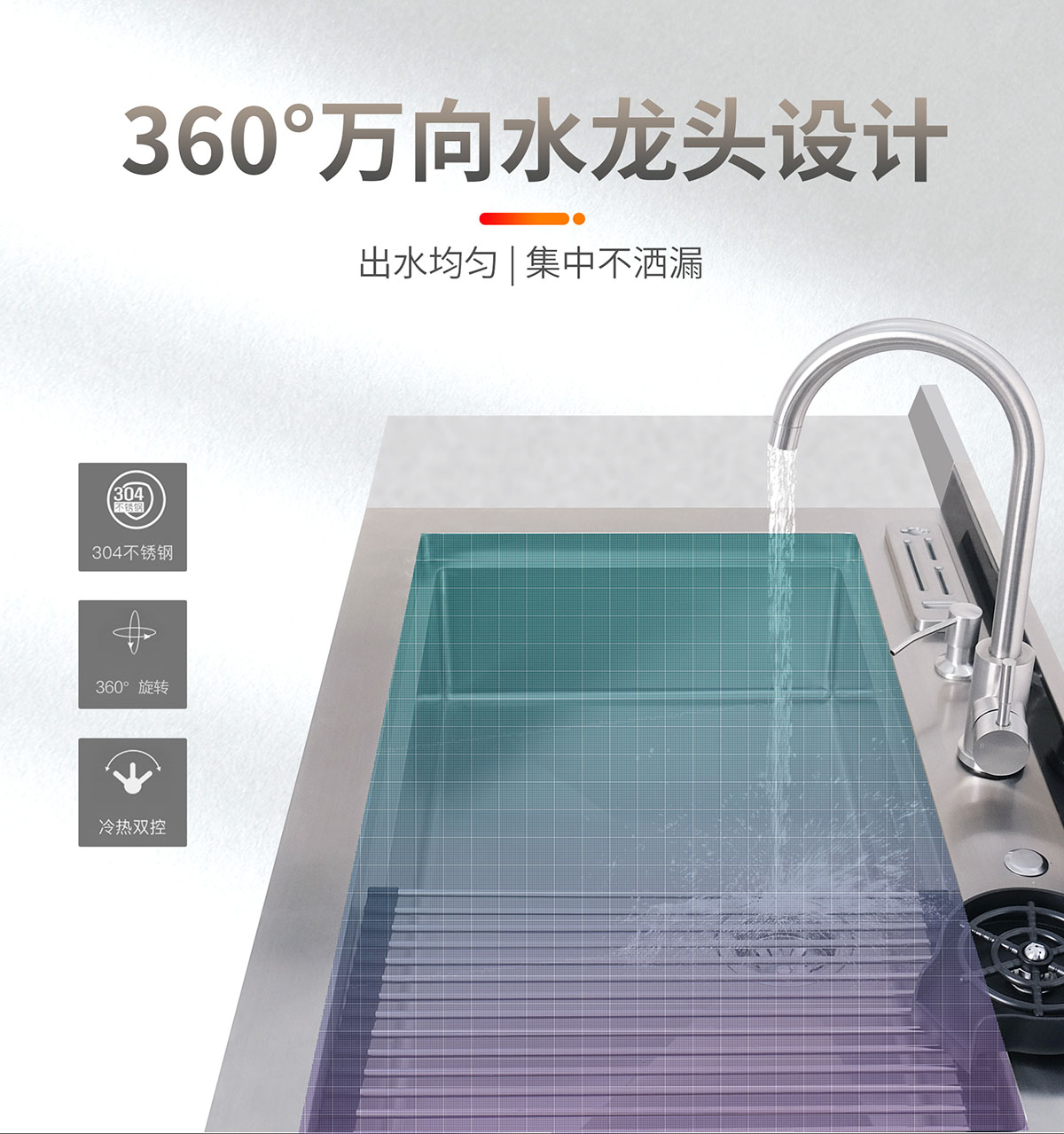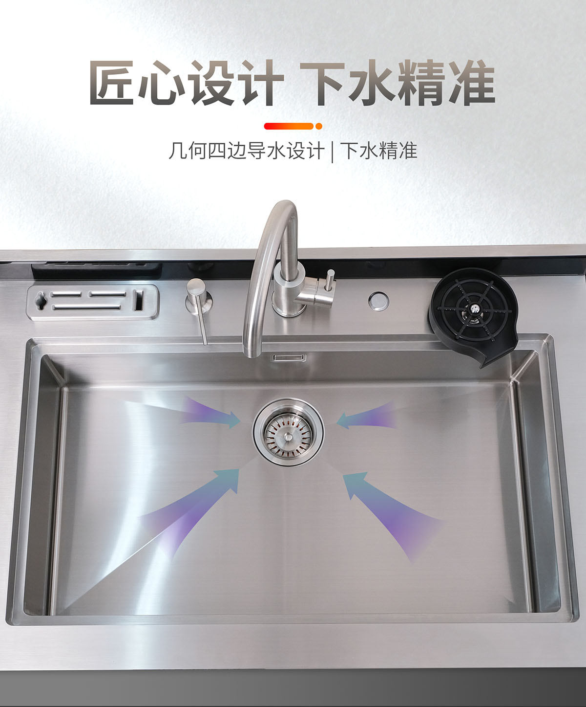 - 瀝水籃與砧板可靈動移動,功能分區(qū),隨心移動
