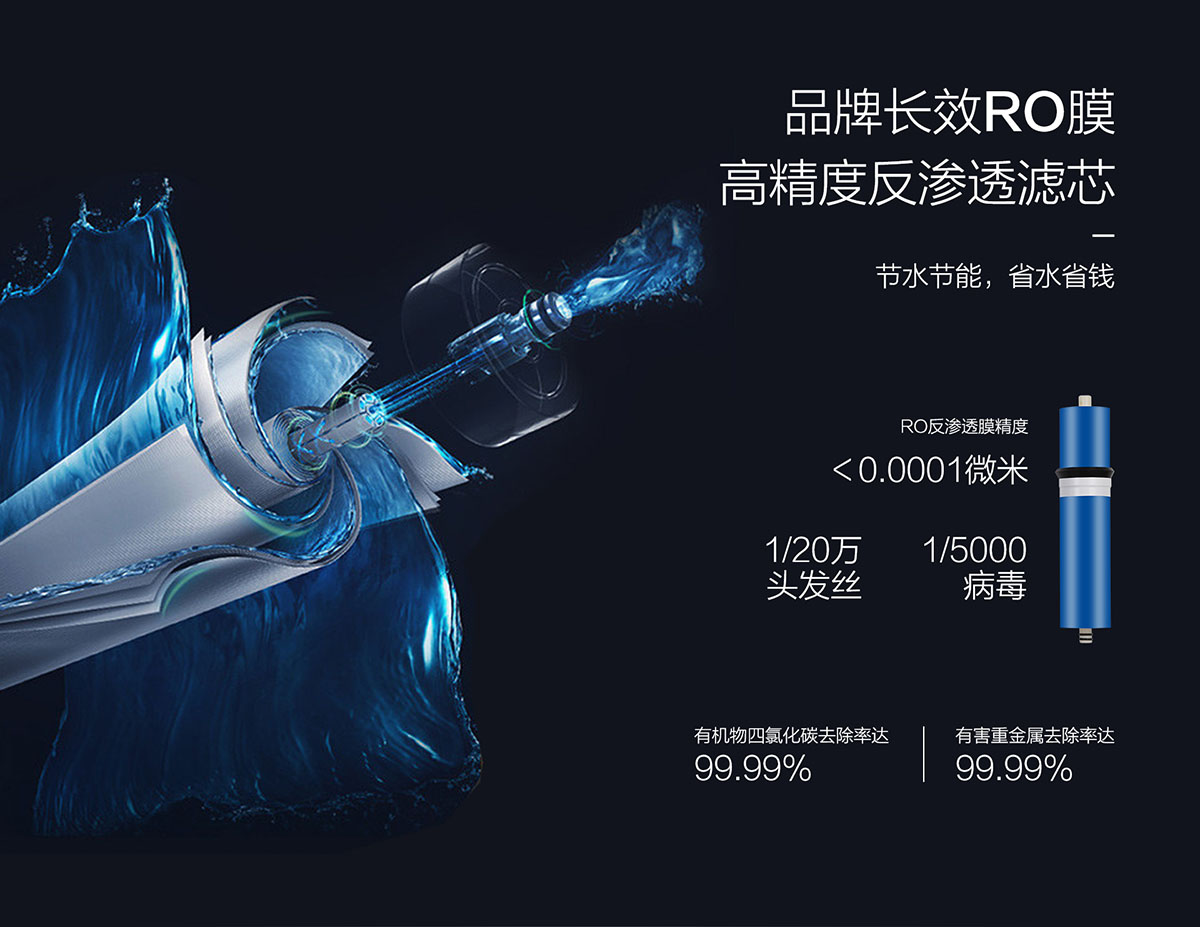 - RO膜長效續(xù)航,高精度反滲透,強(qiáng)凈耐用