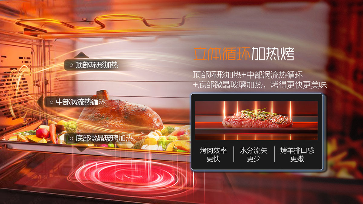 - 蒸烤獨(dú)立,雙管齊下,烹飪更高效