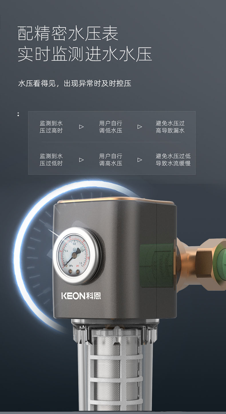 - 配精密水壓表,實(shí)時(shí)檢測(cè)進(jìn)水水壓