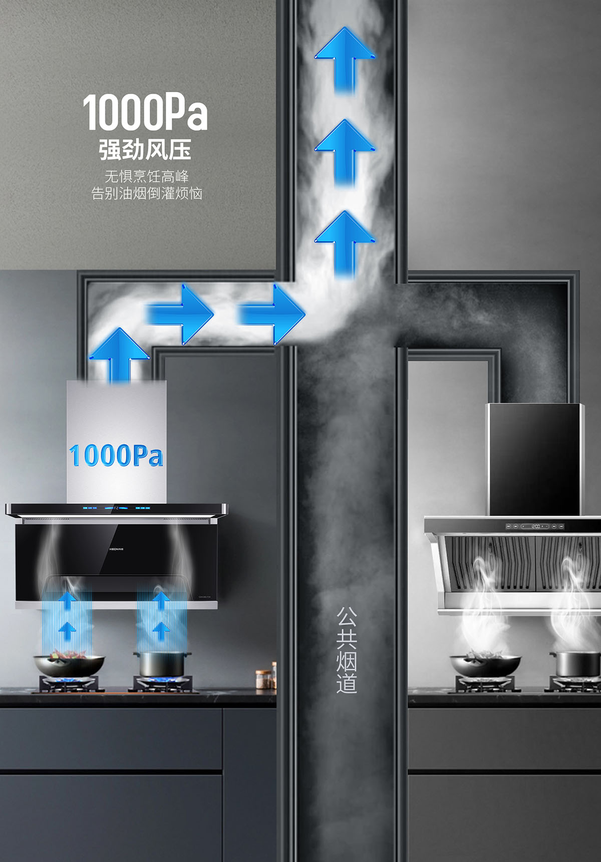 - 1000Pa大風(fēng)壓,告別油煙倒灌煩惱