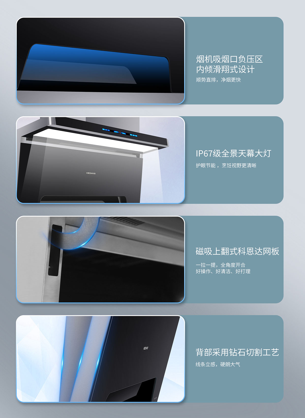 - 磁吸上翻式科恩達(dá)導(dǎo)煙板,清潔更便捷