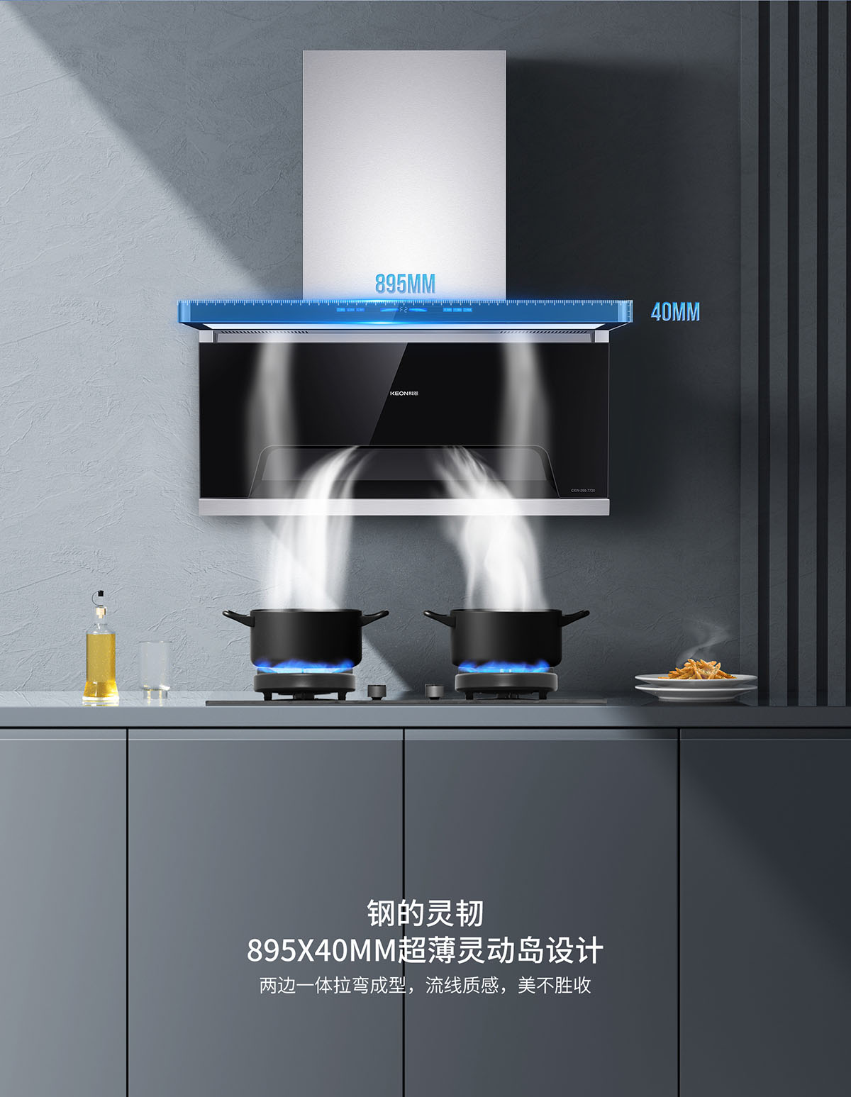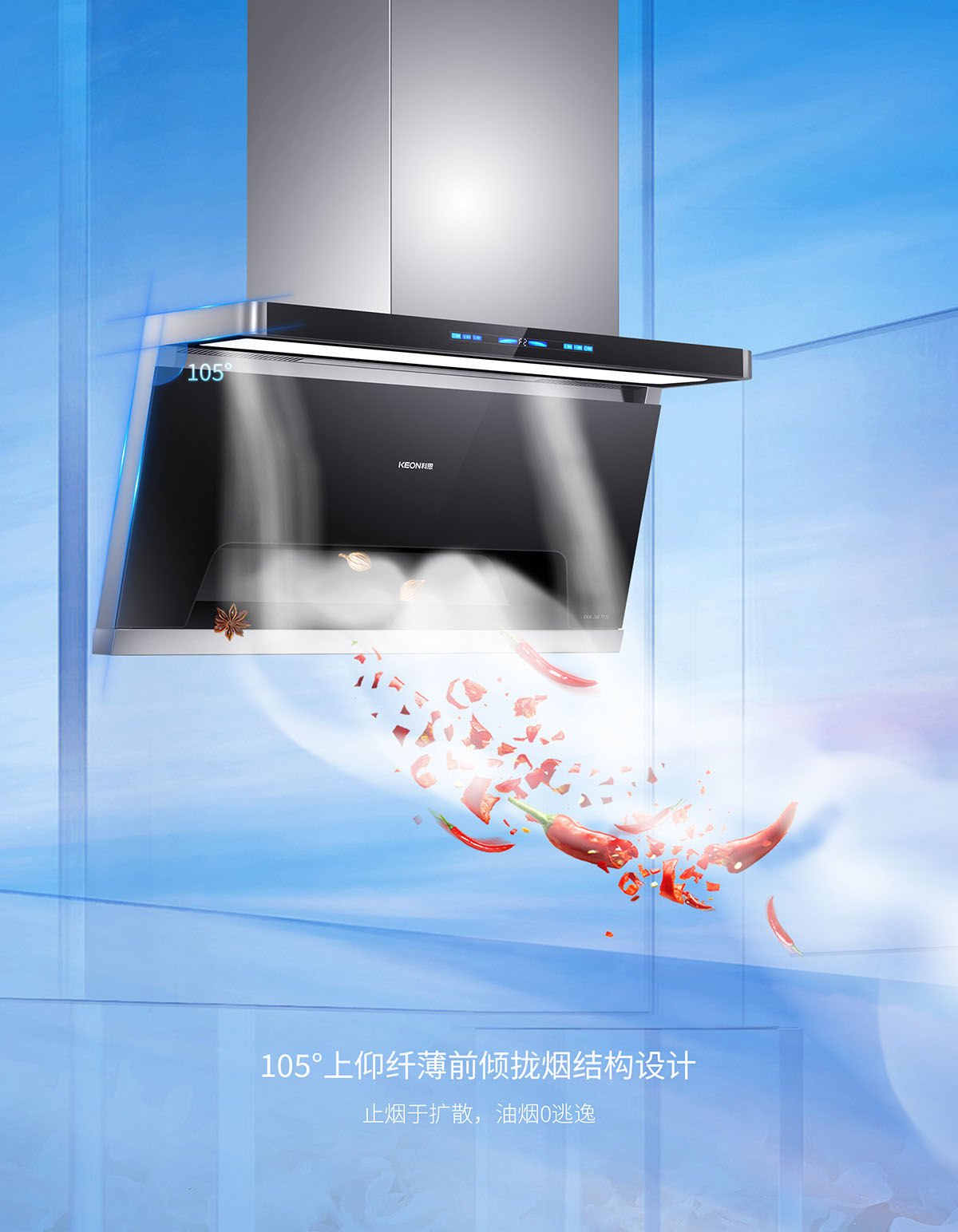 - 105°仰角攏煙設(shè)計(jì),瘦身大空間,翻炒不碰頭