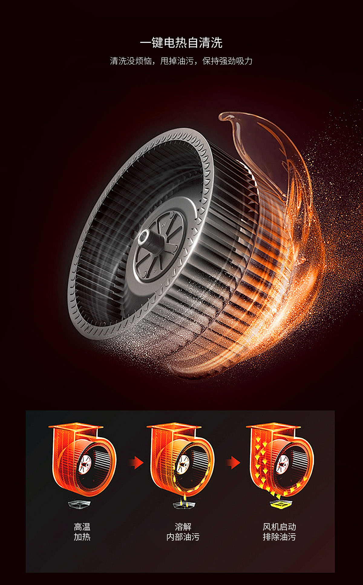 - 電熱自清洗,甩掉油污,保持強(qiáng)勁吸力