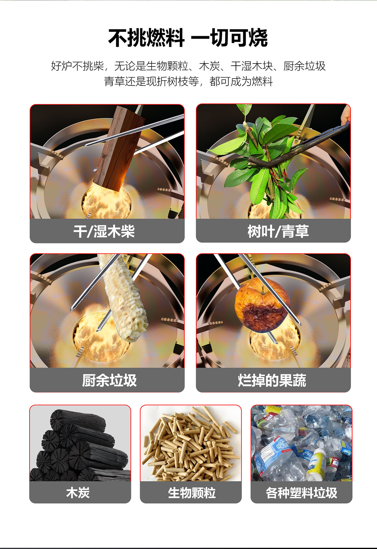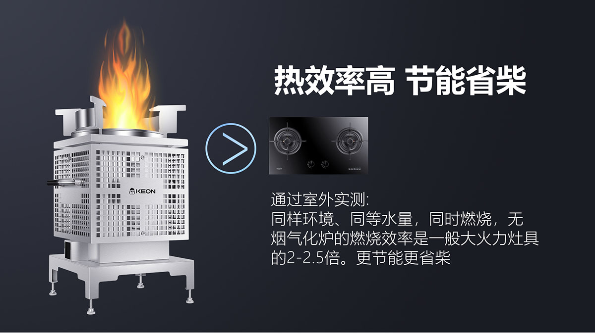 - 3D繞流爐膛,科學供氧,猛火無煙