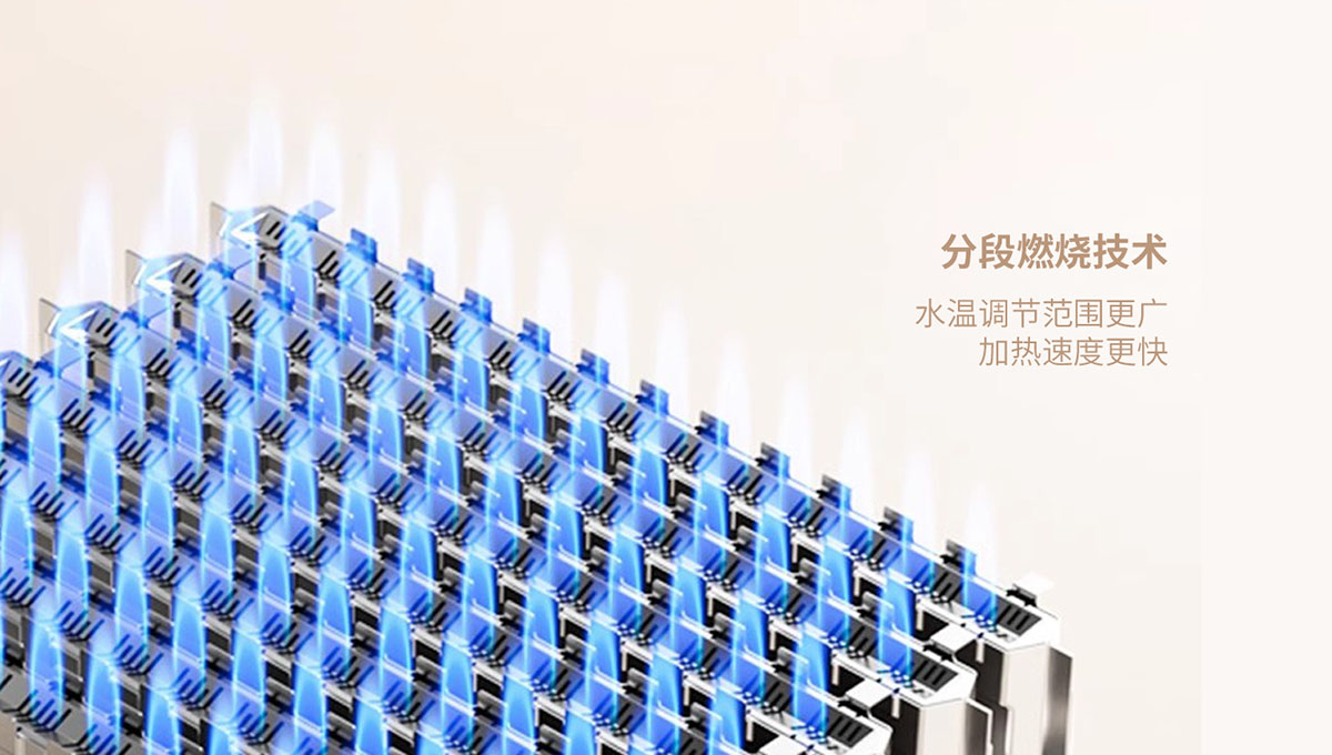 - 分段燃燒技術,⽔溫調節(jié)范圍更廣,加熱速度更快