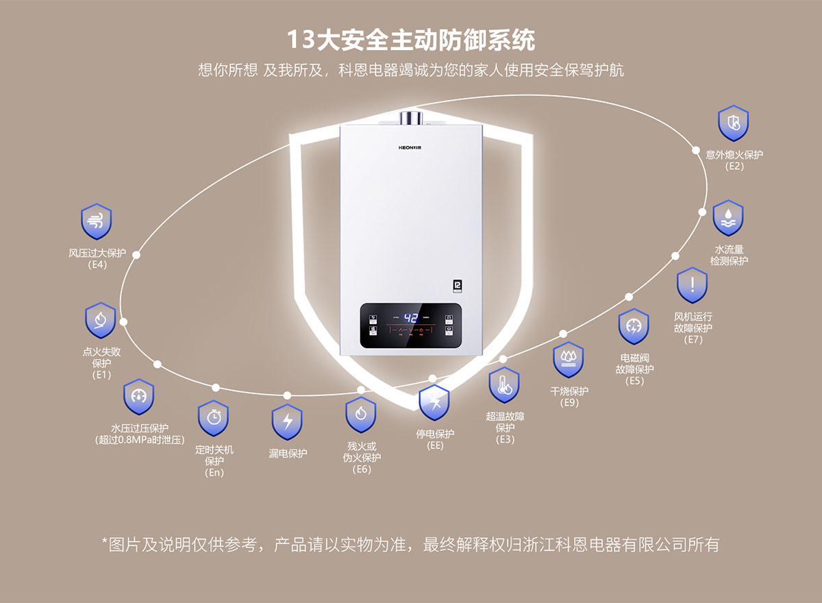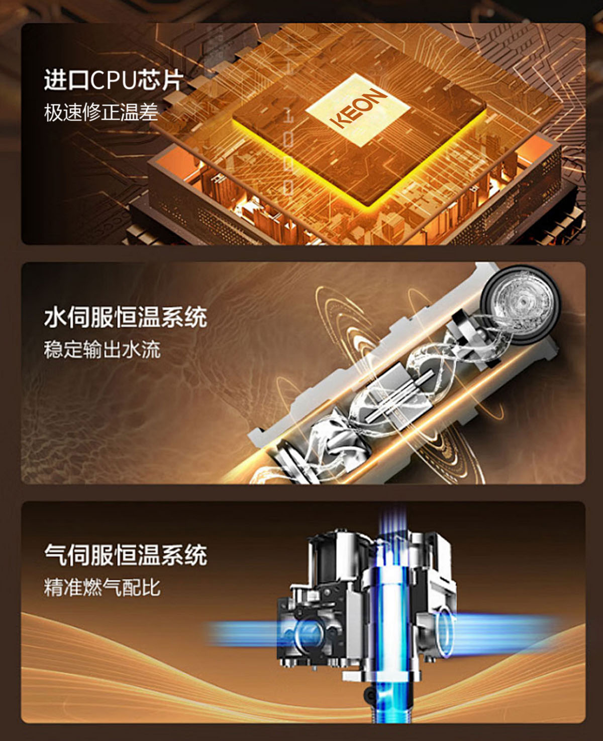 - 極速智能恒溫技術,精確的燃氣比例閥恒溫調節(jié)系統(tǒng)。