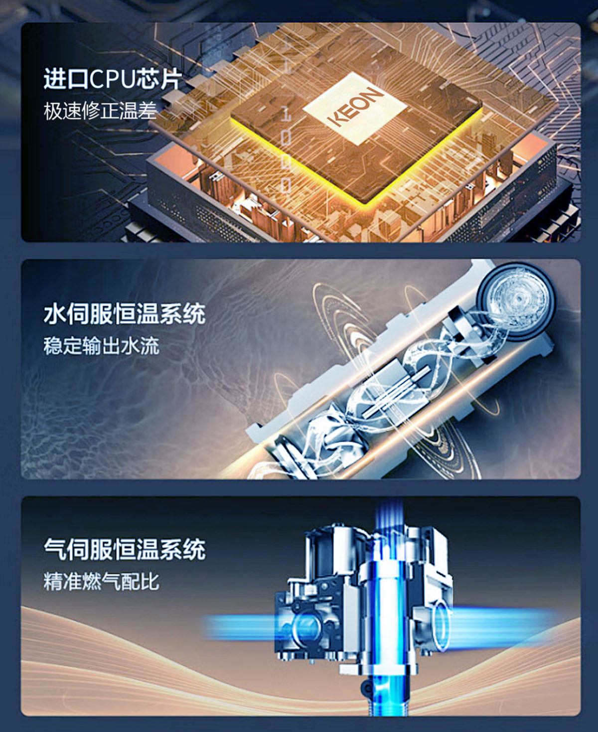 - 極速智能恒溫技術(shù),精確的燃?xì)獗壤y恒溫調(diào)節(jié)系統(tǒng)。