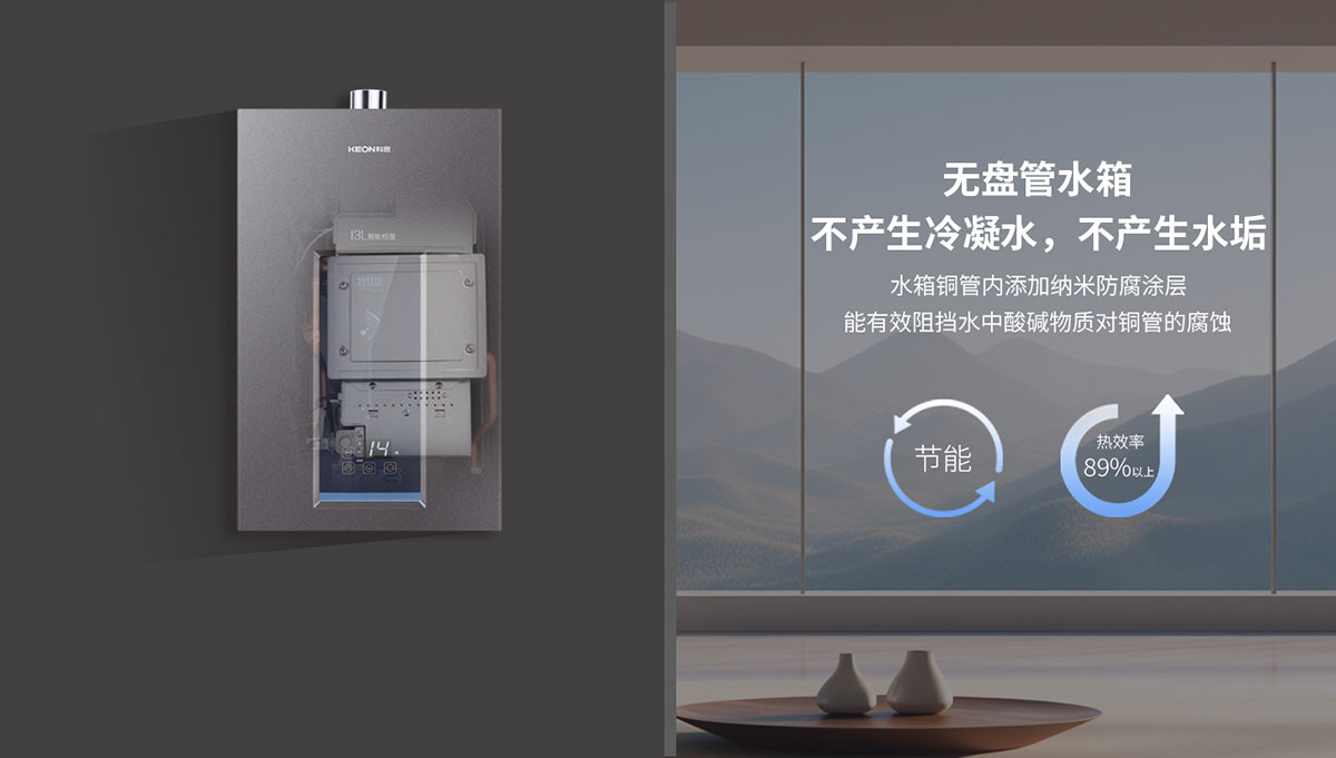 - 無(wú)氧銅水箱環(huán)保、節(jié)能、高效,熱效率高達(dá)89%以上