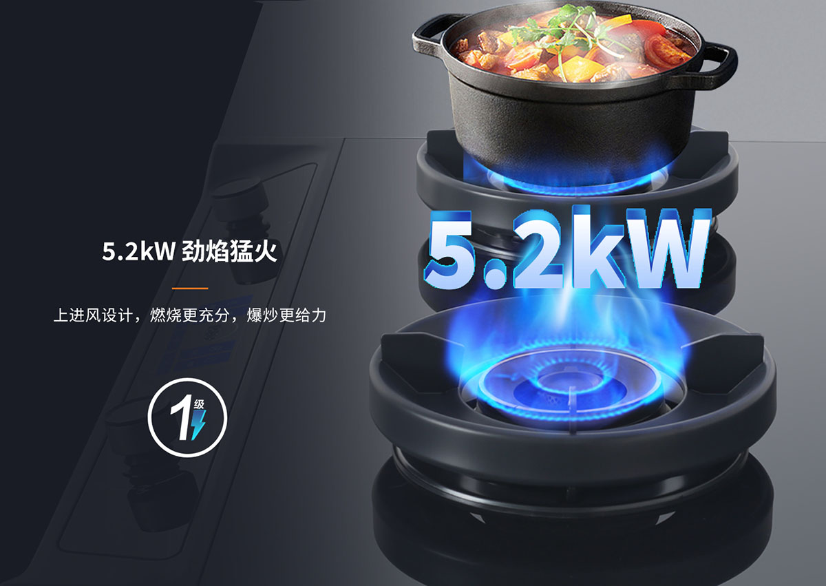 - 5.2Kw藍焰猛火,爆炒更給力