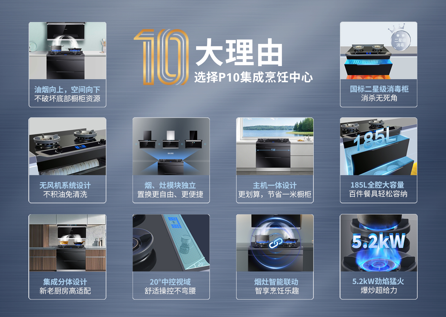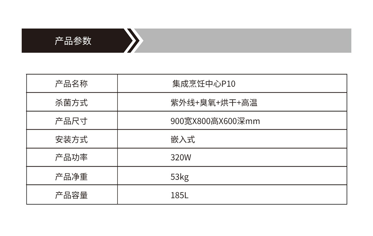 產(chǎn)品型號:烹飪中心P10(大雙抽消灶款)產(chǎn)品名稱:集成烹飪中心(消+灶款)