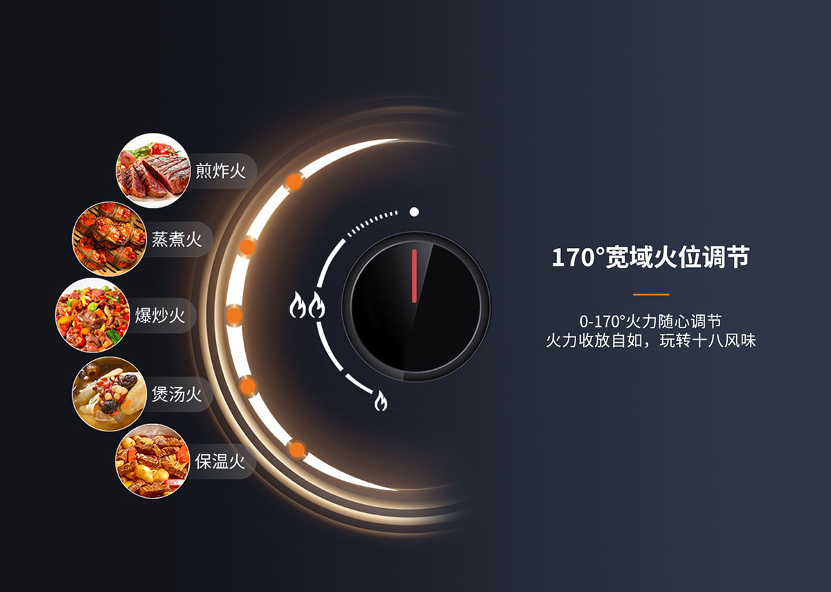 - 寬域火位調(diào)節(jié),適宜各種烹飪