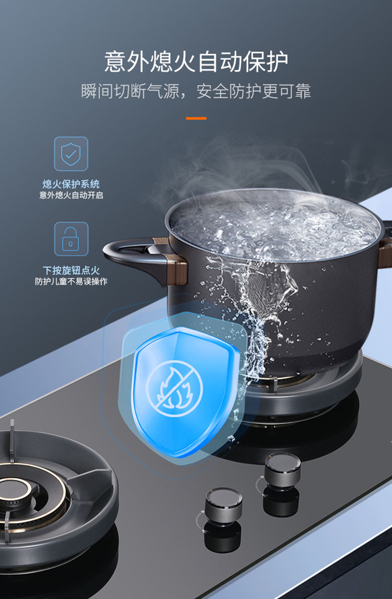 - 意外熄火保護(hù),火滅即刻切斷氣源,安全防護(hù)有保障