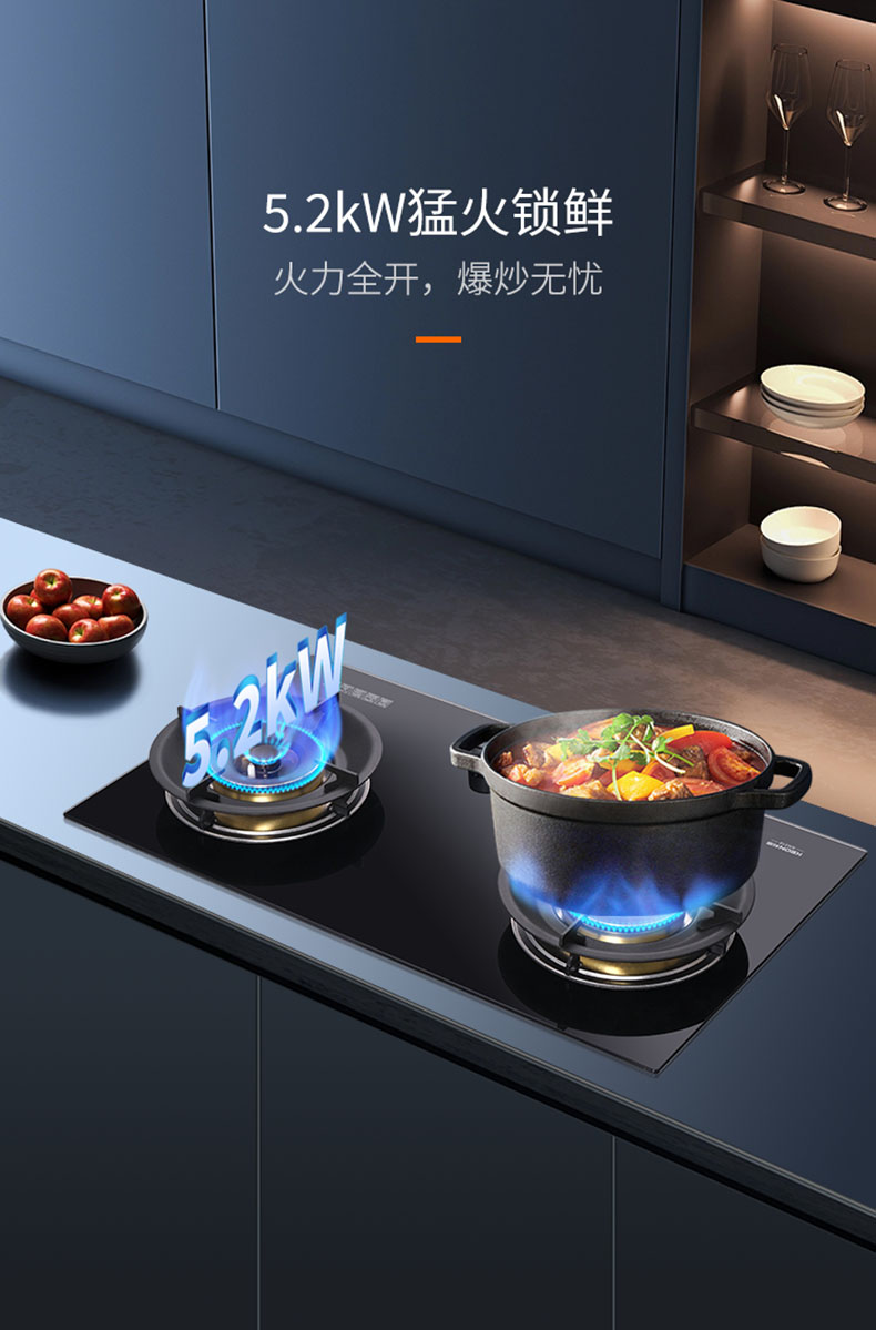 - 5.2kW猛火鎖鮮,火力全開,爆炒無憂