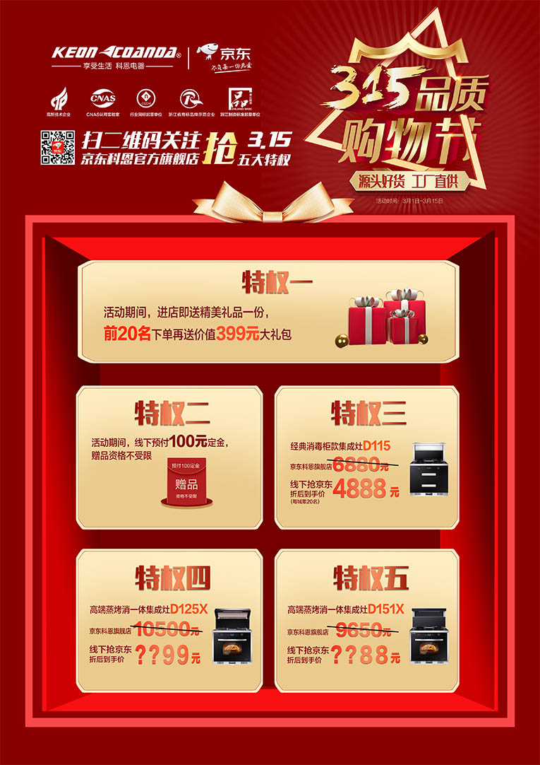 還在等什么呢?集成灶十大品牌、廚電行業(yè)十大品牌科恩電器“315品質(zhì)購(gòu)物節(jié)”為你全程護(hù)航,讓您放心買,安心用,全國(guó)2100余家各大專賣店同步進(jìn)行,期待您的參與!