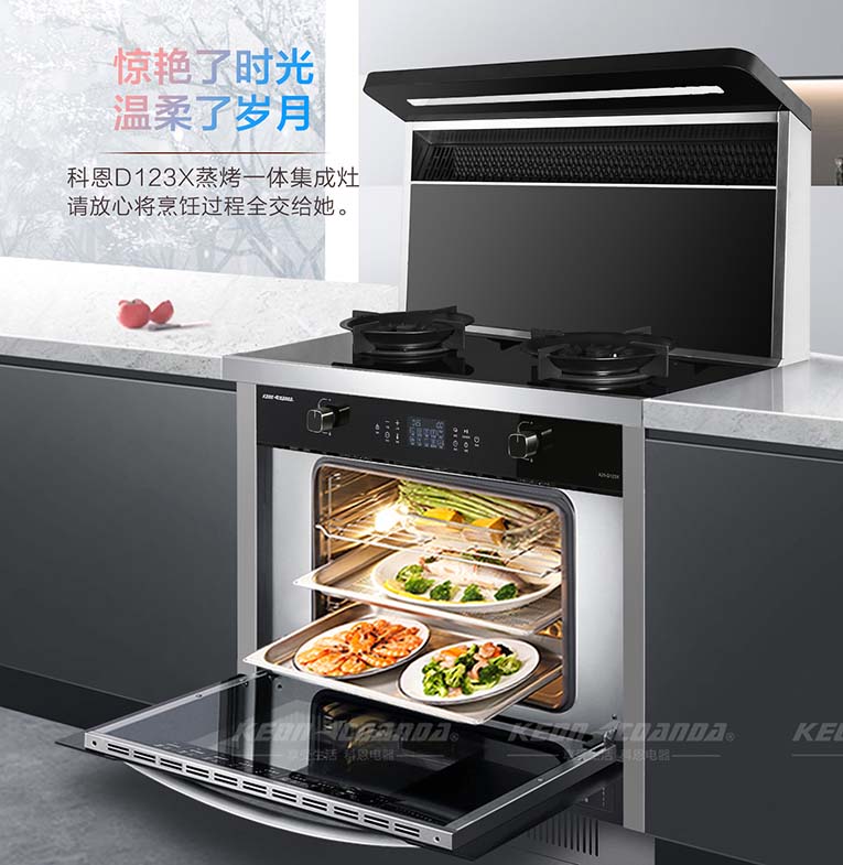 科恩D123X變頻蒸烤消一體智能集成灶為什么頗受消費(fèi)者的喜愛,原因有以下幾方面:1.省空間:科恩D123X集合煙機(jī)、燃?xì)庠睢⒄粝?、烤箱、消毒柜等多種功能于一體,不僅節(jié)省空間還能省下一米櫥柜空間。2.吸油煙能力強(qiáng):比起傳統(tǒng)煙機(jī),科恩D123X離灶臺(tái)距離更近,吸力更強(qiáng),在油煙產(chǎn)生的第一時(shí)間就可以將其吸走,另外油煙的過濾網(wǎng)采用不沾油特氟龍材料,易清洗、耐高溫、抗腐蝕!3.大火力爆炒:尤其是爆炒菜,D123X鑄鐵鍋架帶雙聚能環(huán)設(shè)計(jì),四通道獨(dú)立引射5.0KW大火力猛火爆炒,寬裕立體上進(jìn)風(fēng)充分燃燒,提高燃燒效率,降低一氧化碳排放。