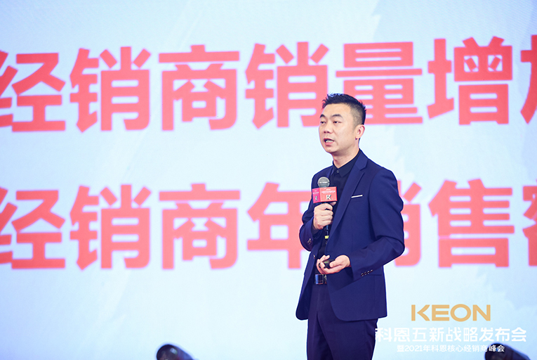 一場(chǎng)震撼全場(chǎng)的沙畫表演后正式會(huì)議正式開始,科恩電器董事長(zhǎng)俞鋒率先上臺(tái)致辭,首先對(duì)現(xiàn)場(chǎng)所有人表達(dá)了誠摯的感謝。2021年科恩電器將乘風(fēng)破浪拉開新帷幕,開啟全新篇章。隨后,科恩電器營(yíng)銷總經(jīng)理趙漢斌發(fā)布“五新戰(zhàn)略”:新門店、新團(tuán)隊(duì)、新模式、新目標(biāo)、新未來!不忘初心,方得始終,一起開創(chuàng)新時(shí)代、新征程!