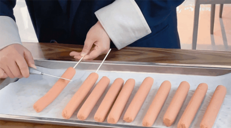 01香腸兩側(cè)搭上斜花刀