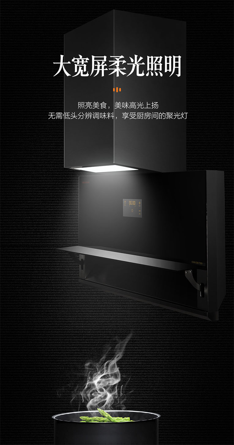 7350煙機(jī)雖然機(jī)身薄,但吸力強(qiáng)大,變頻電機(jī)八檔風(fēng)速調(diào)節(jié),中式八大菜系輕松搞定,一級能效標(biāo)準(zhǔn),爆炒時刻可實(shí)現(xiàn)19.5±10m3/min超大風(fēng)量,最大靜壓可達(dá)800Pa,在油煙未上臉之前,就被吸得一干二凈。