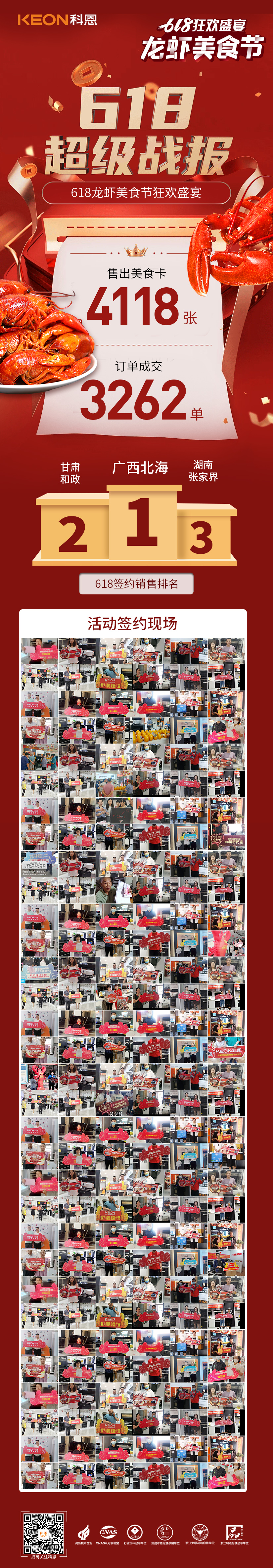 夏日最火的美食非小龍蝦莫屬,科恩集成灶借勢(shì)小龍蝦的social熱點(diǎn),在這個(gè)618年中鉅惠大熱之際,以一場(chǎng)為期近30天的龍蝦美食節(jié)吹響夏日號(hào)角,掀起一陣狂歡浪潮。千城千店,共襄盛舉,全國(guó)各地消費(fèi)者們共赴科恩龍蝦美食宴,隨著6月18日晚直播大抽獎(jiǎng)活動(dòng)的結(jié)束,科恩龍蝦美食節(jié),也畫上了一個(gè)圓滿的句號(hào)。截止6月18日23:59分,科恩集成灶共計(jì)售出4118張美食卡,訂單成交3262單,如此優(yōu)秀成績(jī),充分印證了科恩電器的產(chǎn)品品質(zhì)和優(yōu)質(zhì)口碑!
