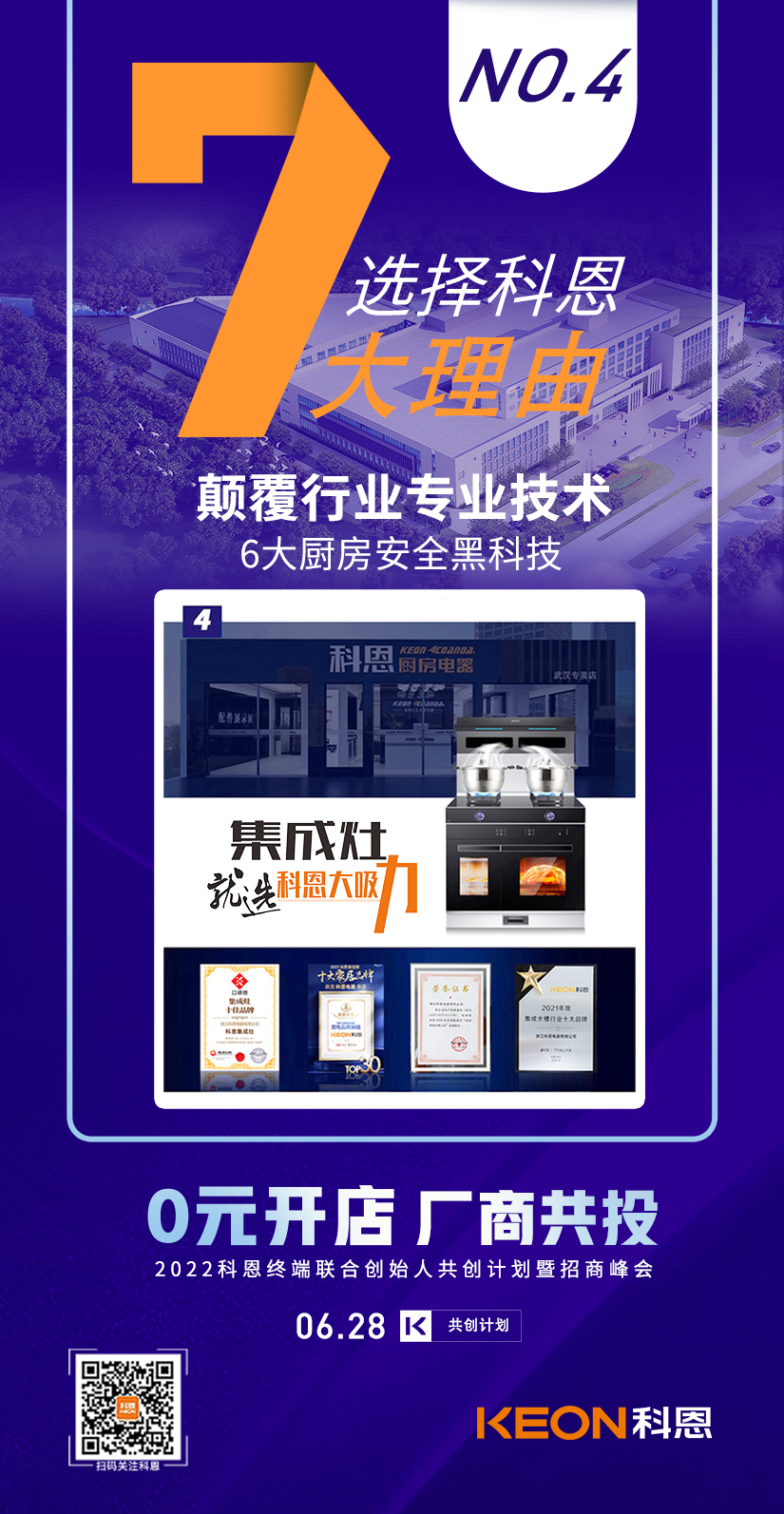 生活從未變輕松,但我們會逐漸強大,現(xiàn)在處于什么位置并不重要,重要的是你將前進的方向,那個了不起的自己,值得被尊重,每個為夢想而努力的人,都值得被歌頌!誠邀您參加2022年6月28日在浙江嵊州,由浙江科恩電器有限公司主辦的「0元開店,廠商共投」2022年科恩終端聯(lián)合創(chuàng)始人共創(chuàng)計劃暨招商峰會,并真誠期望我們于此次活動共享藍海市場商業(yè)機會的同時,商討雙方企業(yè)發(fā)展策略,共同揭開科恩集成灶品牌的神秘面紗。