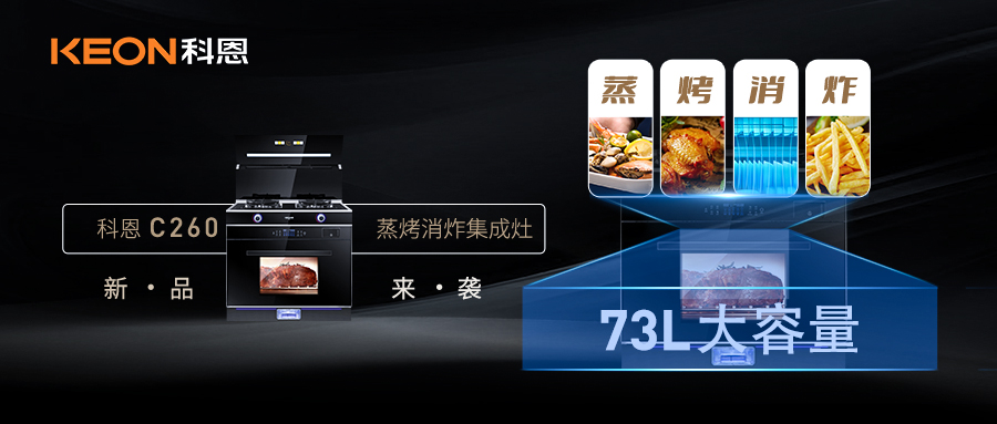 如果你的廚房智能留下一個插電廚具,你會留下哪一件?煙機、灶具、蒸箱、烤箱、消毒柜、空氣炸鍋?作為一個天天下廚、熱愛烹飪的人來說,廚房里的廚電還一樣都少不得!實在難以取舍!科恩C260蒸烤消炸一體集成灶了解一下!不僅實力與顏值雙雙在線,更是集功能之大成,高性價比于一身,從頭到腳,從內(nèi)到外都是高配!