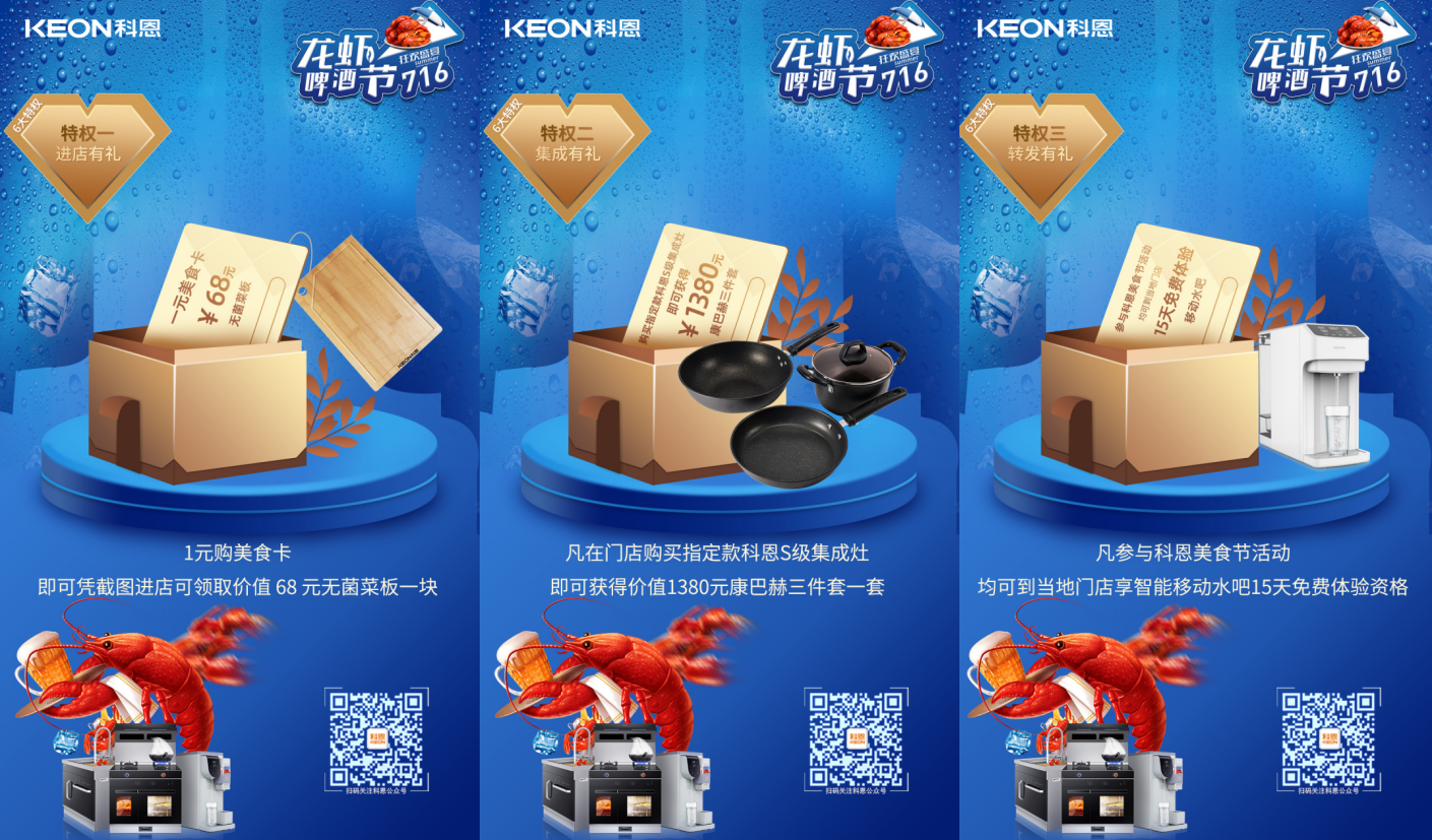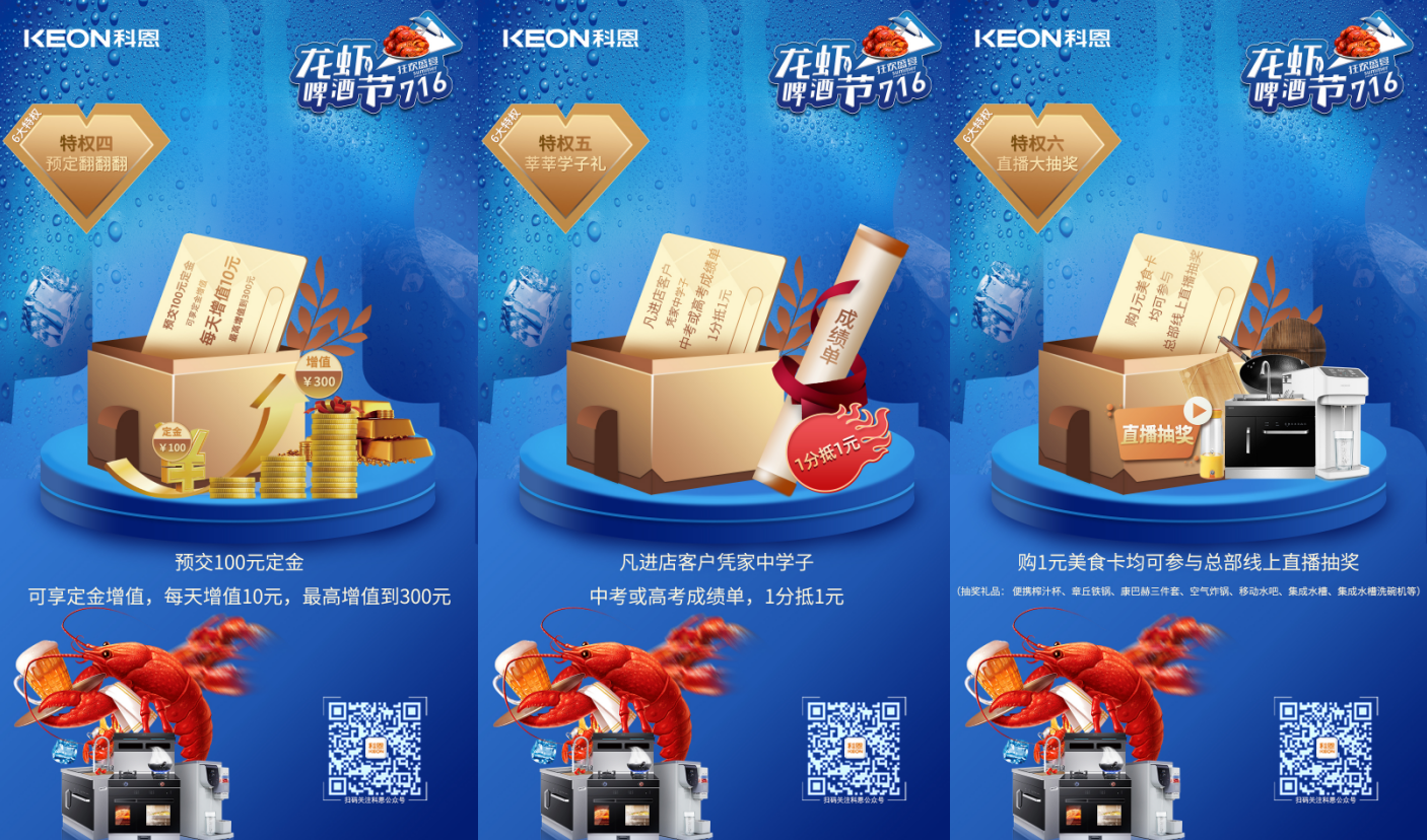 7月2日-7月16日,由科恩集成灶舉辦的“清涼一夏,無限暢飲”龍蝦啤酒節(jié)活動(dòng)正在如火如荼的進(jìn)行中,炎炎夏日,何以消暑,當(dāng)然是去科恩集成灶門店“蹭”免費(fèi)的空調(diào),現(xiàn)場不僅有各種口味的小龍蝦供大家品嘗、冰爽啤酒讓你清涼一夏,更有進(jìn)店有禮、集成有禮、轉(zhuǎn)發(fā)有禮、預(yù)定有禮、莘莘學(xué)子禮、直播大抽獎(jiǎng)等精彩活動(dòng)等你參與!