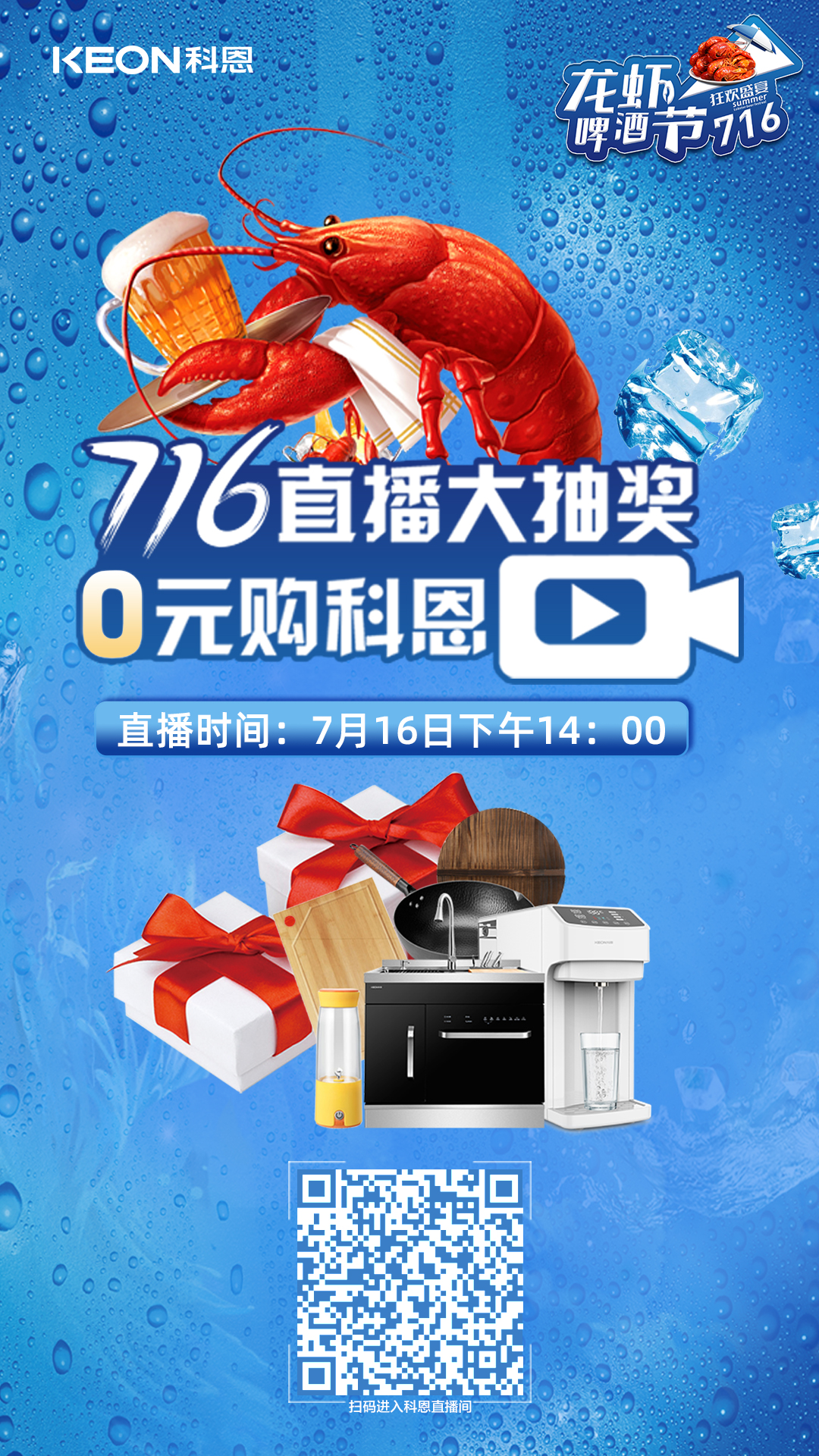 這還不夠,7月16日14點,716直播大抽獎準時開播,活動期間,凡購買1元美食特權(quán)卡用戶不僅可憑截圖進店領(lǐng)取價值68元無菌菜板一塊,還可參與716總部線上直播大抽獎,看直播中大獎,便攜榨汁杯、章丘鐵鍋、康巴赫三件套、空氣炸鍋、移動水吧、集成水槽、集成水槽洗碗機等海量豪禮抽不停!科恩寵你,不講道理!