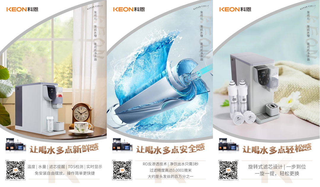 清晨早起的第一杯水,承載著一天的愉悅和舒心,科恩R6068集成式凈水器,精準(zhǔn)控溫出水,無需在旁等待,定量自動(dòng)取水,不溢杯不浪費(fèi),用一杯甘甜好水喚醒全身細(xì)胞,激活新陳代謝,元?dú)鉂M滿??贫鱎6068免安裝自由擺放,客廳、廚房、臥室、書房,到哪都可以喝上放心水,溫度、水量、濾芯壽命實(shí)時(shí)顯示,水質(zhì)監(jiān)測(cè),一目了然。RO反滲透技術(shù),凈飲出水只需3秒,過濾精度高達(dá)0.0001微米,大約是頭發(fā)絲的百萬分之一,鮮活凈飲,凈在咫尺;旋轉(zhuǎn)式濾芯設(shè)計(jì),一步到位,一旋一提,輕松更換,安全感滿滿,幸福感爆棚!