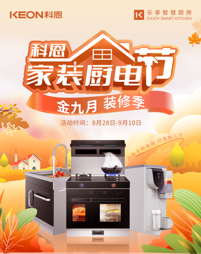 科恩電器早已提前為大家備好了金九銀十家裝好物,寶劍出鞘正待此時,【金九科恩家裝廚電節(jié)】即將火爆開啟,你要的優(yōu)惠、美食、直播、大獎,全在這里!更多驚喜,只等你來全國各大科恩專賣店一探究竟!