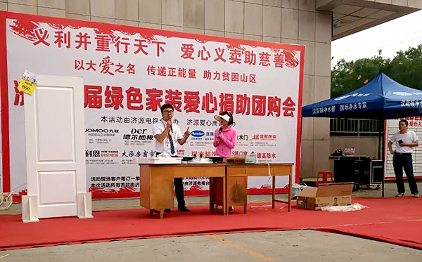 “義利并重行天下,愛(ài)心義賣(mài)助慈善”,7月2日,濟(jì)源首屆綠色家裝愛(ài)心捐助團(tuán)購(gòu)會(huì)在河南濟(jì)源市電視臺(tái)隆重舉辦,現(xiàn)場(chǎng)參展品牌以家居建材為主,產(chǎn)品齊全,所有所需用品一站式購(gòu)齊,省時(shí)、省力、省心、省錢(qián)。